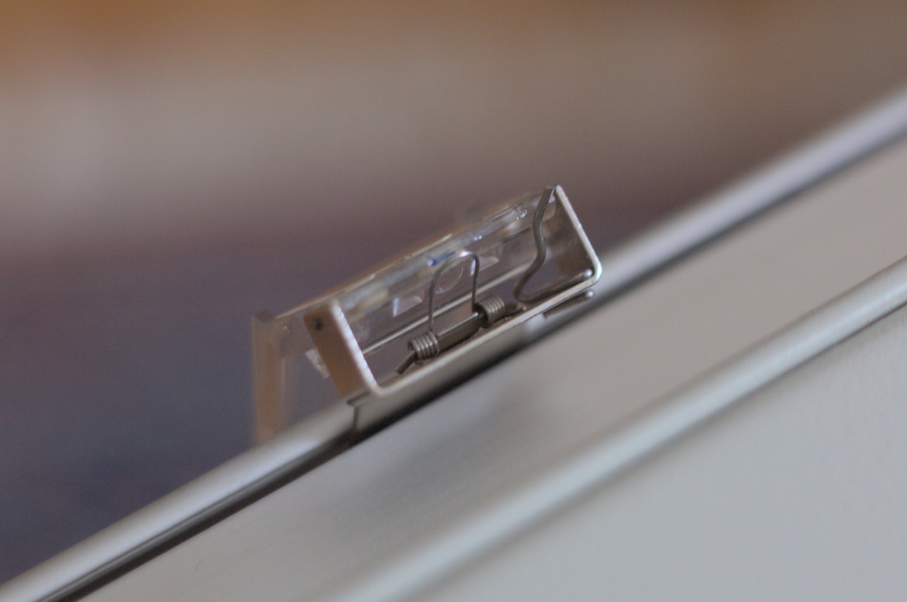 Der einzige Nachteil ist, dass die originalen Stifte bereits bei sehr sanftem Auflegen schreiben, während die Gelschreiber etwas mehr Aufdruckkraft brauchen. Eine Zeit lang war die Lösung dafür eine mit Klebeband am Stiftarm befestigte schwere Schraube, aber als hübschere, endgültige Lösung dient nun eine dafür gebogene Feder, die seitlich eingeführt genau den richtigen zusätzlichen Druck liefert.